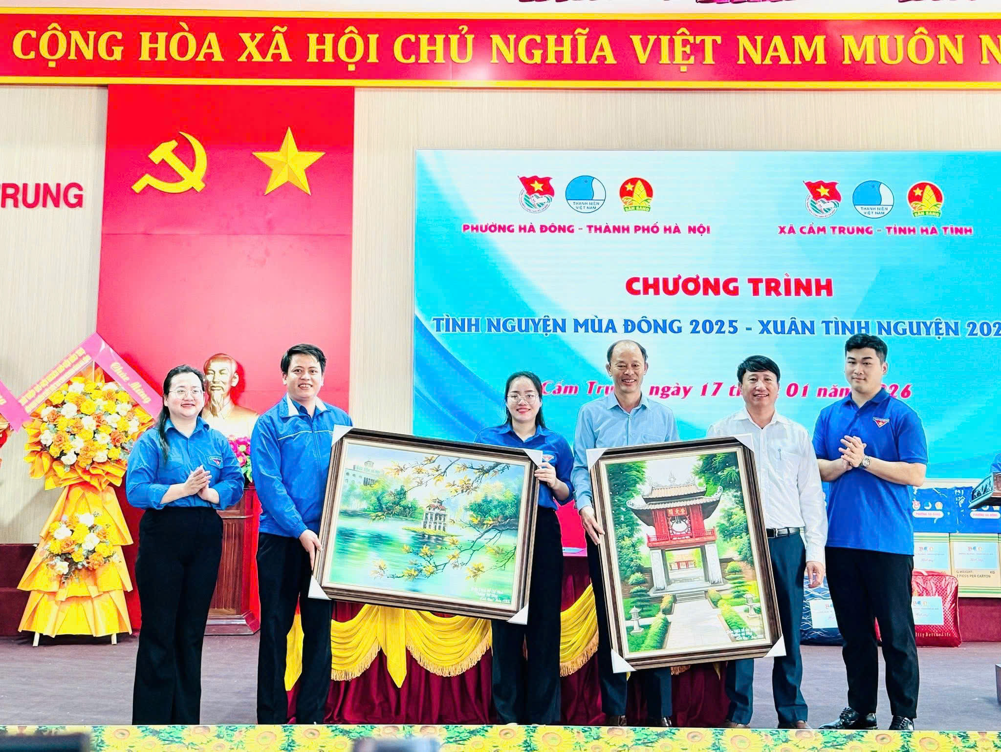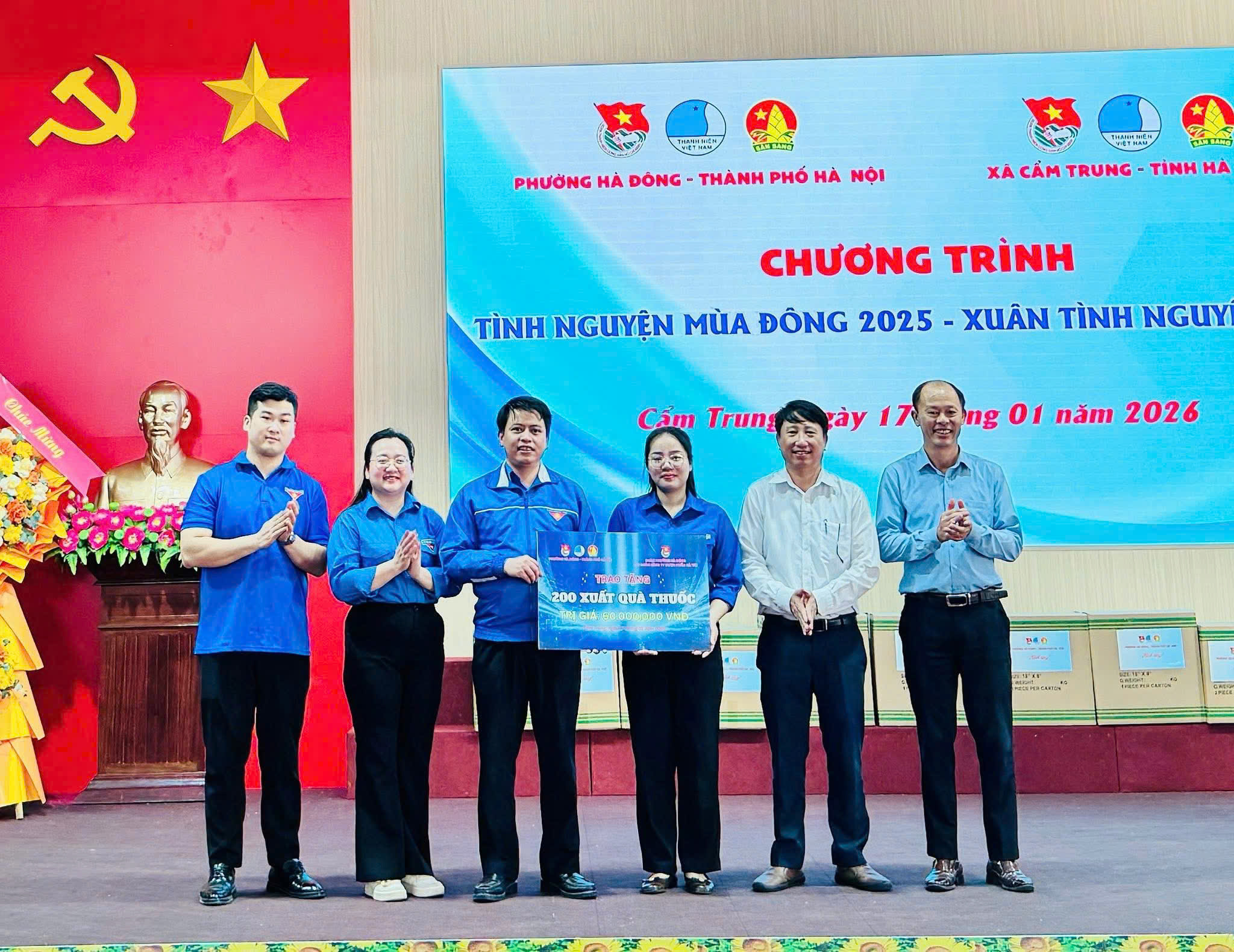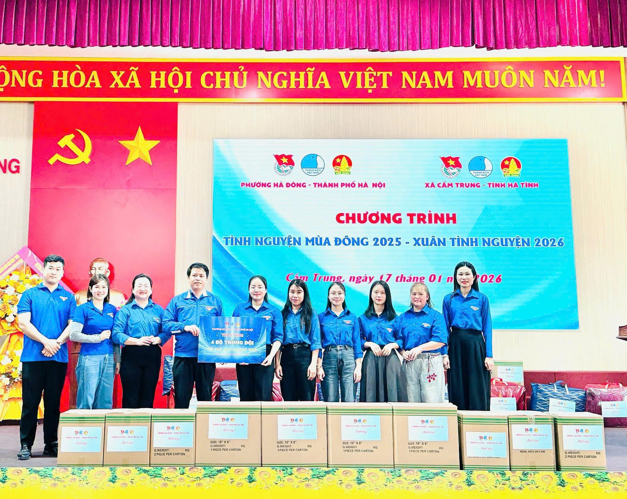 Thực hiện Chương trình công tác Đoàn và phong trào thanh thiếu nhi năm 2026, sáng ngày 17/ 1/2026, Ban Thường vụ Đoàn xã Cẩm Trung, tỉnh Hà Tĩnh phối hợp với Đoàn phường Hà Đông, thành phố Hà Nội tổ chức Chương trình “Tình nguyện mùa Đông năm 2025 – Xuân Tình nguyện năm 2026” trên địa bàn xã Cẩm Trung. Tham dự chương trình, về phía Đoàn phường Hà Đông có đồng chí Nguyễn Tiến Phúc – Ủy viên Ban Chấp hành Thành đoàn Hà Nội, Phó Chủ tịch Ủy ban MTTQ Việt Nam phường, Bí thư Đoàn Thanh niên, Chủ tịch Hội đồng Đội phường; đồng chí Đỗ Thùy Linh – Phó Bí thư Đoàn Thanh niên, Phó Chủ tịch Hội đồng Đội phường; đồng chí Nguyễn Hoàng Lợi – Phó Bí thư Đoàn Thanh niên, Chủ tịch Hội Liên hiệp Thanh niên phường Hà Đông. Về phía địa phương có đồng chí Nguyễn Văn Tiến – Ủy viên Ban Thường vụ Đảng ủy, Phó Chủ tịch UBND xã; đồng chí Bùi Xuân Định – Ủy viên Ban Thường vụ Đảng ủy, Chủ tịch Ủy ban MTTQ Việt Nam xã Cẩm Trung; cùng các đồng chí Bí thư, Phó Bí thư Chi đoàn trên địa bàn toàn xã, đại diện các hộ gia đình và các em học sinh được nhận quà trong đợt này.