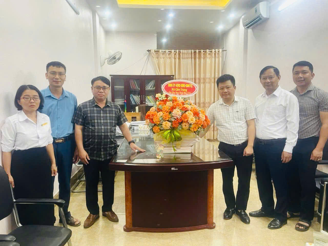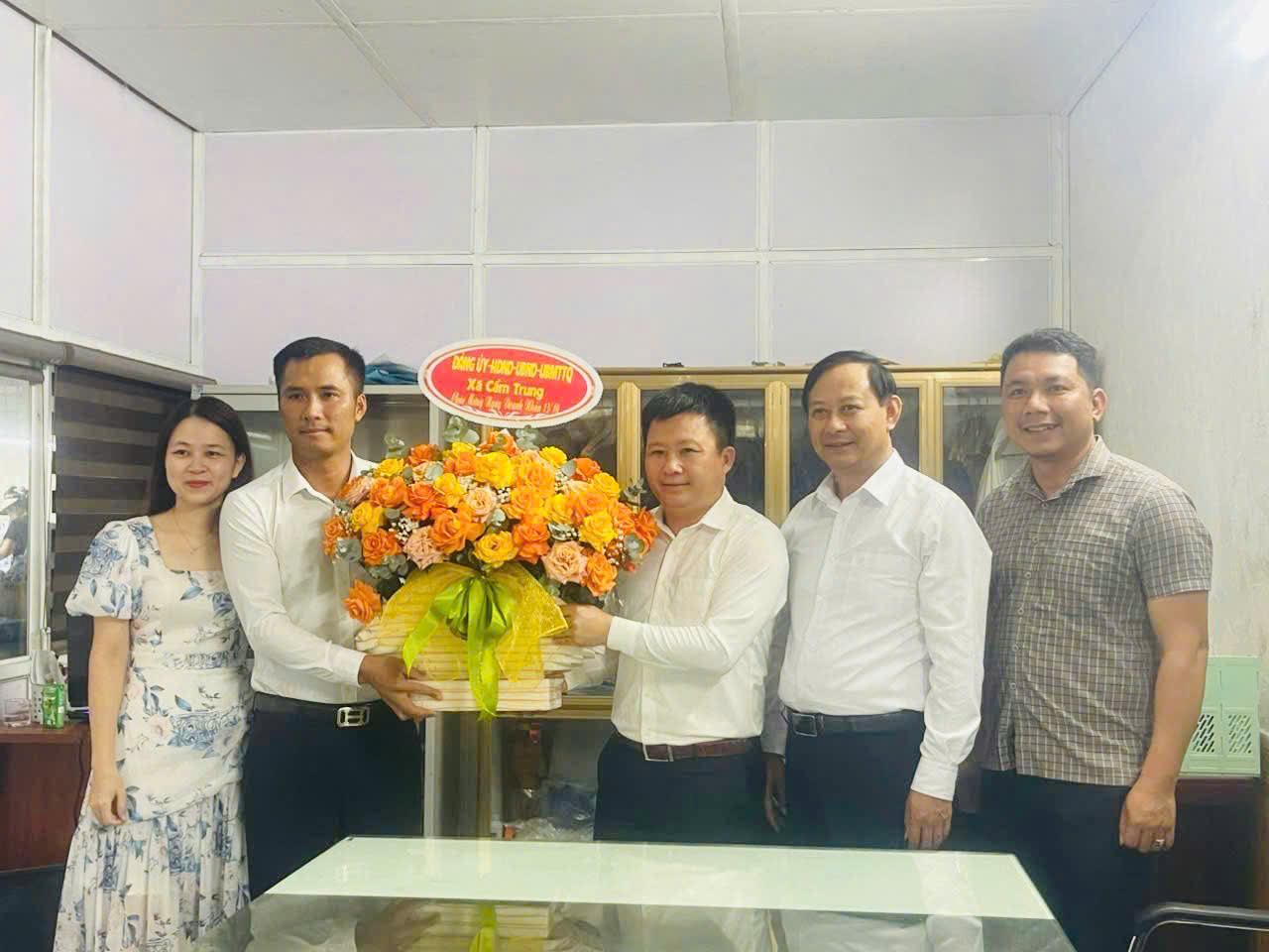 Cùng ngày Lãnh đạo Đảng ủy, Chính quyền địa phương, Mặt trận tổ quốc xã đã đến trực tiếp một số doanh nghiệp trên địa bàn động viên và tặng hoa chúc mừng.