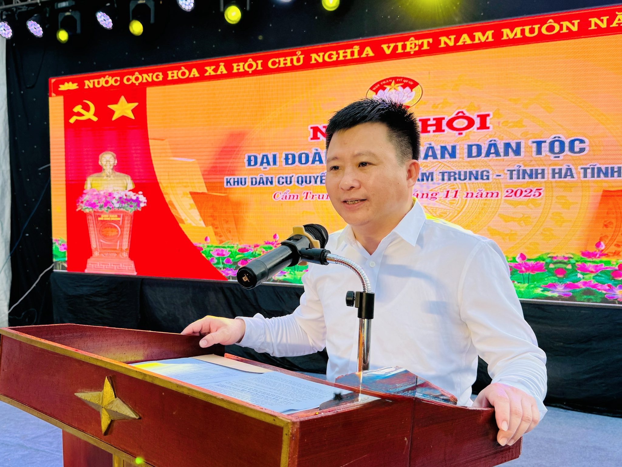 Hòa chung trong không khí hân hoan của toàn Đảng, toàn quân và toàn dân cả nước hướng về Ngày hội Đại đoàn kết toàn dân tộc năm 2025, chiều ngày 9/11/2025, Ban Công tác Mặt trận khu dân cư thôn Quyết Tâm, xã Cẩm Trung, tỉnh Hà Tĩnh long trọng tổ chức Lễ kỷ niệm 95 năm Ngày truyền thống Mặt trận Tổ quốc Việt Nam (18/11/1930 - 18/11/2025) và Ngày hội Đại đoàn kết toàn dân tộc. Tham dự Ngày hội có đồng chí Phạm Hoàng Anh – Bí thư Đảng ủy, Chủ tịch HĐND xã; đồng chí Hoàng Văn Chương – Phó Bí thư Thường trực Đảng ủy; đồng chí Trần Viết Chiến – Phó Bí thư Đảng ủy, Chủ tịch UBND xã; cùng các đồng chí trong Ban Thường vụ Đảng ủy, Thường trực HĐND, lãnh đạo UBND, Ủy ban MTTQ, đại diện các ban, ngành, đoàn thể xã Cẩm Trung và đông đảo bà con nhân dân thôn Quyết Tâm.