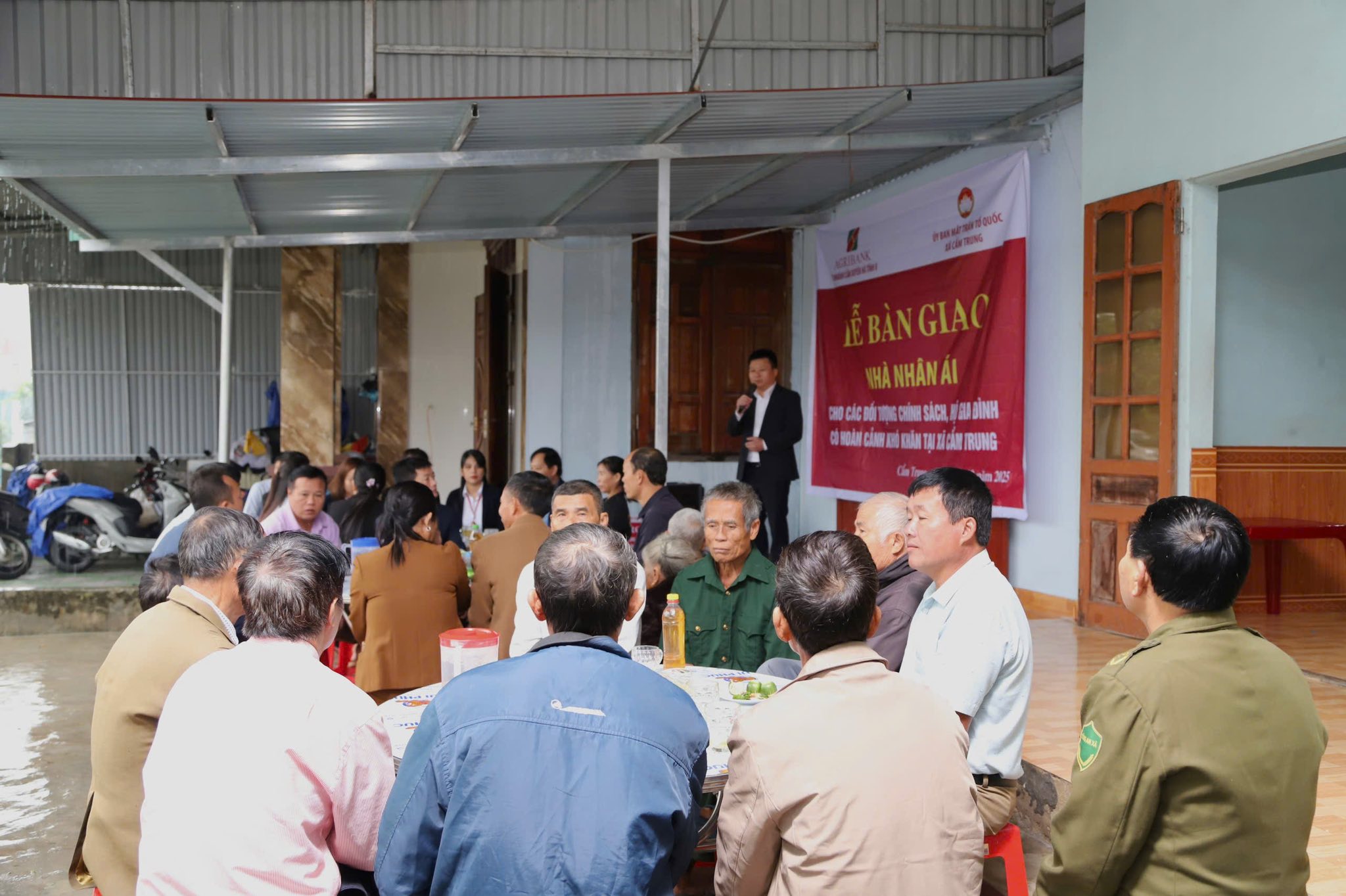 Ủy ban Mặt trận Tổ quốc Việt Nam xã Cẩm Trung, tỉnh Hà Tĩnh phối hợp với Ngân hàng Agribank Chi nhánh Cẩm Xuyên vừa tổ chức bàn giao 3 nhà Nhân ái cho các hộ gia đình có hoàn cảnh khó khăn trên địa bàn. Tham dự buổi lễ có đồng chí Phạm Hoàng Anh – Bí thư Đảng ủy, Chủ tịch HĐND xã, đồng chí Trần Viết Chiến – Phó bí thư Đảng ủy, Chủ tịch UBND xã, đồng chí Bùi Xuân Định - Ủy viên BTV Đảng ủy, Chủ tịch Ủy ban MTTQ xã, các đồng chí Thường trực HĐND, lãnh đạo UBND các phòng ngành chuyên môn UBND xã, các đồng chí Thường trực Ủy ban MTTQ xã. Về phía nhà tài trợ có các đồng chí Phó giám đốc và cán bộ, chuyên viên Ngân hàng Agribank Chi nhánh Cẩm Xuyên.