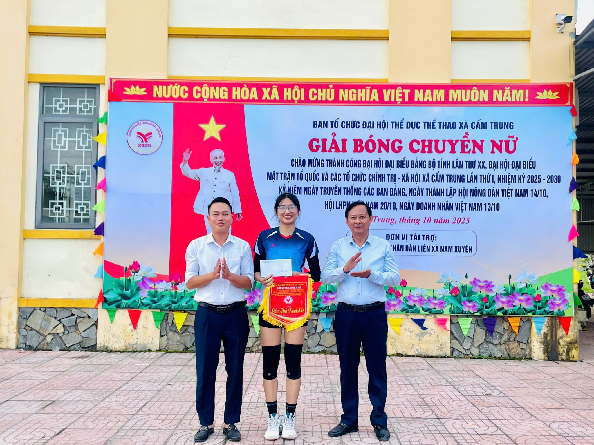 BTC trao giải VĐV xuất sắc nhất cho VĐV: Phạm Thị Phương Thảo, đội bóng thôn Nam Thành